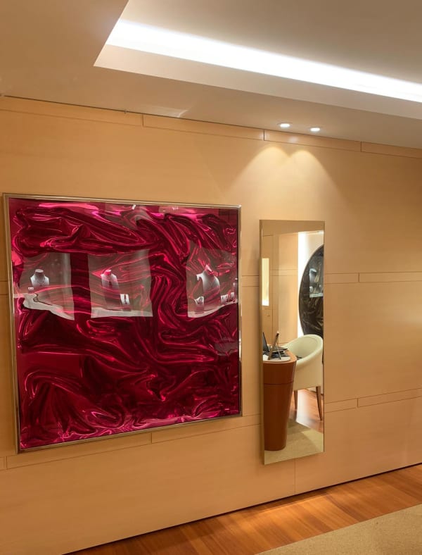 UNTITLED (VP/I), 1990-2012Pigmented resin and mirror stainless steel130 h x 130 w x 15 d cm (51.2 x 51.2 x 5.9 inches) -